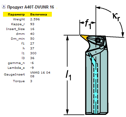 Для растачивания внутренних поверхностей выбираем расточной резец CoroTurn 107 (рис. 6).