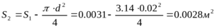 2. Площади левой части S1 и правой части S2 гидроцилиндра: