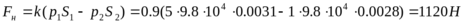 где k = 0.9 – эмпирический коэффициент, учитывающий потери на трение поршня о стенки пневмоцилиндра.