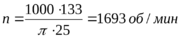 4) Расчет скорости резания (v) и числа оборотов шпинделя в минуту (n):