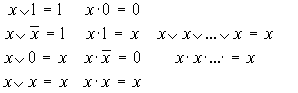 Тождественность приведенных аналитических зависимостей можно установить, пользуясь законами алгебры логики, приведенными ниже.