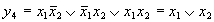 Функция у4 представляет собой функцию логического сложения, дизъюнкцию. Она принимает значение единицы, если значение единицы имеет хотя бы одна переменная х1 или х2: