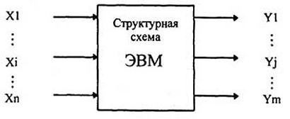 Вся информация в ЭВМ представляется в двоичной системе счисления. Поставим в соответствие входным сигналам отдельных устройств ЭВМ соответствующие значения хi(i=1,n), а выходным сигналам - значения функций yj(j=1,m) (рис.1).