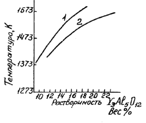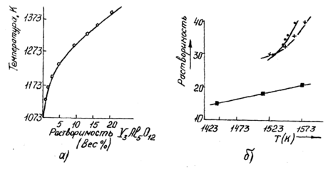 ис. 11.1.2.8. Температурные зависимости, растворимости граната состава: Y3Al5O12