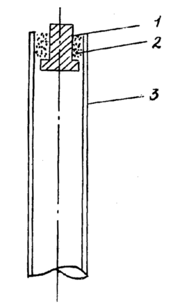 В том случае, когда исходное вещество обладает достаточно высокой упругостью пара необходима кристаллизация под избыточным внешним давлением. Обычно используются избыточные давления до 200 атм. Этот способ не единственный. Имеется возможность создания избыточного давления за счет кристаллизуемого вещества. Для этого достаточно плотно закупорить контейнер с веществом; по мере испарения вещества внутри контейнера создается избыточное давление за счет собственных паров материала. Для этого разработана специальная пробка (рис. 11.1.20), которая после заполнения контейнера шихтой вставляется в верхний торец трубки. Герметичность достигается путем предварительного расплавления другого вещества помещенного между стенкой контейнера с пробкой, обладающего температурой плавления много выше чем кристаллизуемое вещество.