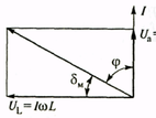 Рис. 14.12. Эквивалентная схема замещения и векторная диаграмма катушки индуктивности с магнитным сердечникомэлектрической изоляции. Если пренебречь сопротивлением обмотки катушки и ее собственной емкостью, то из векторной диаграммы получим