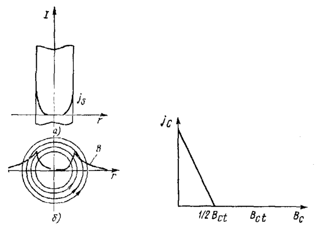 Критические плотности тока велики, и если бы не эффект экранирования, который приводит к выталкиванию тока в топкий приповерхностный слой, то через СП можно было бы пропускать очень большие токи.