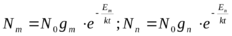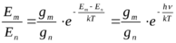 где gт и gn — статистические веса данных уровней (степени вырождения), т. е. число различных состояний для данного энергетического уровня. Населенности этих уровней, т.е. число частиц с данной энергией в единице объема вещества, определяются соотношениями