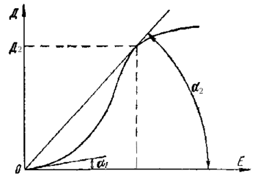 где (α2— наибольшее значение угла наклона к оси Е касательной к кривой D=f(E);