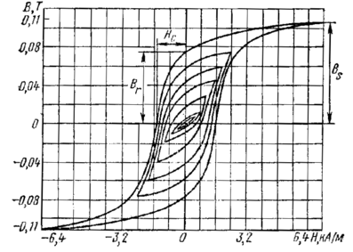 Для того чтобы уменьшить индукцию от значения Вr до нуля,. необходимо приложить обратно направленную напряженность поля Hс, называемую коэрцитивной (задерживающей) силой.