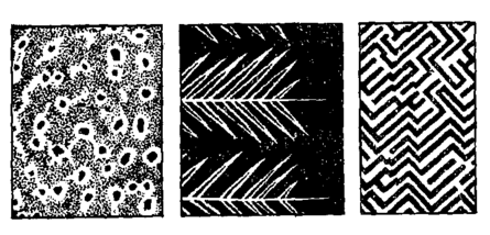 При осаждении на полированную поверхность намагниченного образца тончайшего ферромагнитного порошка последний, концентрируясь на границах его доменов, дает характерные узоры, названные фигурами Акулова (рис. 9.1) —советского ученого, впервые обнаружившего это явление. Их можно видеть под оптическим микроскопом на поверхности железа, никеля, кобальта и других ферромагнетиков.