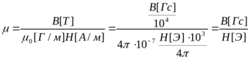 T=104 Гс; 1 А/м=4 10-3Э=0,01256Э или 1 Э=79,6 А/м 80 А/м.