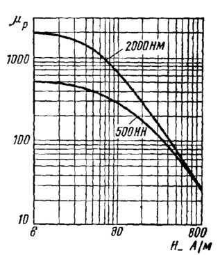 4) сплавы с постоянной магнитной проницаемостью μ в слабых полях.