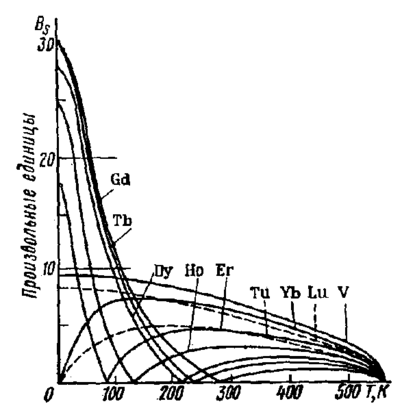 Рис. 9.27. Температурные зависимости намагниченности феррогранатов различных редкоземельных элементов