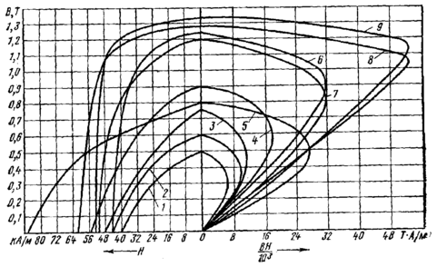 При замкнутом магните Вd=Вr; причем энергия равна нулю, так как Нd=0. Если зазор между полюсами очень велик, то энергия при этих условиях также стремится к нулю, так как Вd=0, Hd=Hc