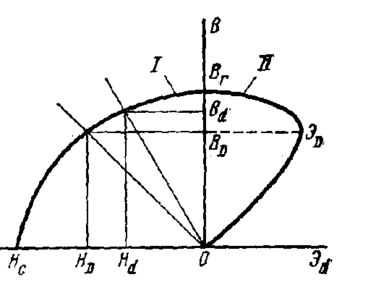 На рис. 9.31 представлена кривая размагничивания (четвертая часть петли гистерезиса), а также кривая, выражающая зависимость энергии Эd, от величины индукции Bd.
