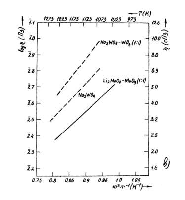 ис. 11.1.2.2 в. Температурные зависимости вязкости растворителей - молибдатные и вольфраматные растворители
