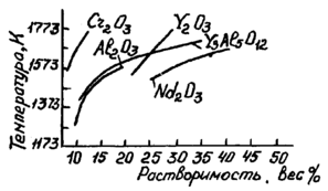 ис. 11.1.2.8. Температурные зависимости, растворимости граната состава: Y3Al5O12