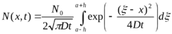 оличество вещества Q в интервале (а-h, a+h) в случае одномерной диффузии находится по формуле Q=N02h, после устремления h к нулю для распределения концентраций получим следующее выражение:(11.3.9)