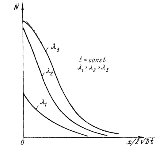 На рис. 11.3.12 показаны концентрационные зависимости, соответствующие решению представленной системы диффузионных уравнений.