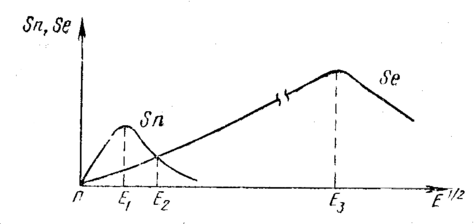 Рис. 11.5.3. Зависимости электронной Se и ядерной Sn тормозных способностей от энергии внедряемых ионов
