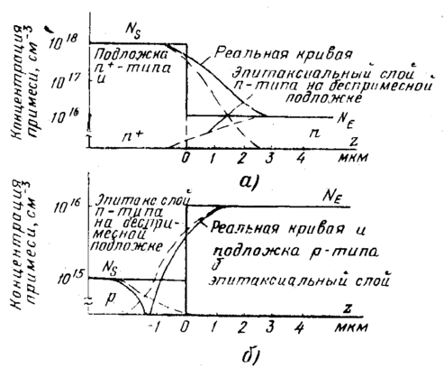 Перераспределение примеси, происходящее в - процессе эпитаксии, пренебрежимо мало по сравнению с перераспределением, происходящим при дальнейшей обработке.