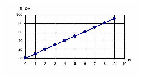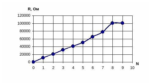 Снять зависимости суммарного сопротивления для двух декад магазина сопротивлений Р-33 (по указанию преподавателя) от числа включённых безреактивных катушек, предварительно проверив их мультиметром Щ-4300. Построить зависимости сопротивления, абсолютной и относительной погрешностей от числа включенных резисторов декады.