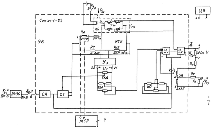 Мост температурной компенсации МТК в двух плечах содержит постоянные резисторы R7, R12, в третьем - настроечный резистор Rв, в качестве которого в работе использованы резисторы 700 и 200 Ом. Последний шунтирован магазином сопротивлений 7, который используется для балансировки моста температурной компенсации. Четвертым плечом служит тензомост, диагональное сопротивление которого зависит только от температуры. Таким образом, МТК представляет неуравновешенный мост, его пропорциональный температуре и усиленный усилителем Уз сигнал Uк измеряется цифровым вольтметром между точками 21, 22 усилителя.