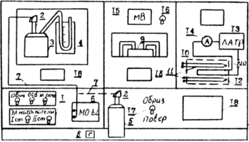 | Рис. 1. – Схема лабораторного стенда для испытания ТС и ТЭП |