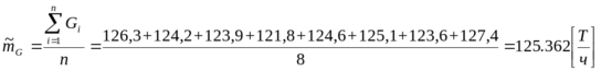 G = {126,3; 124,2; 123,9; 121,8; 124,6; 125,1; 123,6; 127,4} т/ч. При доверительной вероятности 0,9 определить среднее значение температуры, среднюю квадратическую погрешность и границы доверительного интервала. При расчете использовать распределение Стьюдента.