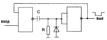 Ждущий мультивибратор (одновибратор) на элементах 2И-НЕ. Снять и построить зависимость длительности выходного импульса Т от постоянной времени τ, где τ = RС.