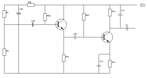 Рис. 7 Схема усилительного каскада с эмиттерным повторителем (ЭП)