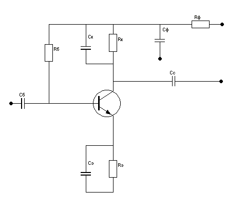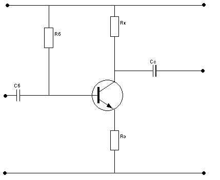 Рассчитаем значения элементов схемы основного усилительного каскада на биполярном транзисторе.