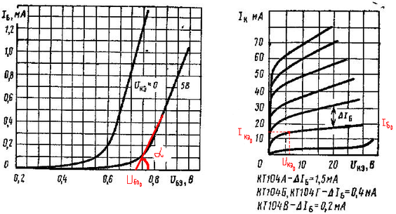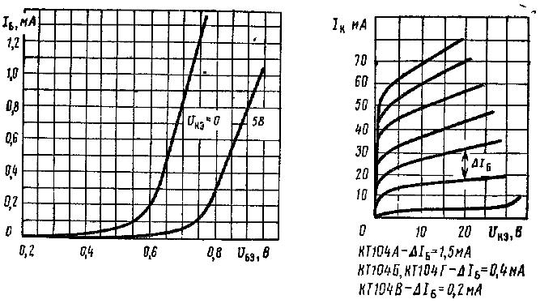 Рис. 1 Входные и выходные характеристики транзистора КТ104А