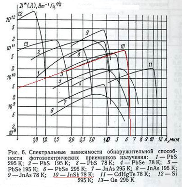 Табл. 1 (по рис. 8) Зависимость обнаружительной способности от длины волны