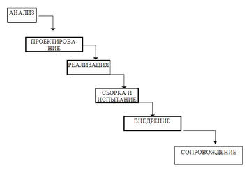 • однократный проход (водопадная стратегия) — линейная последовательность этапов конструирования;