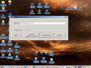 Первоначально кнопки «Среднее арифметическое» и «Количество» заблокированы, потому что до ввода исходных данных на них нажать нельзя. Щелчок мышью на строке ввода исходных данных переводит программу в исходное состояние.