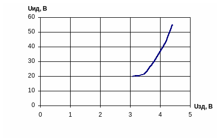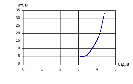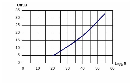 | Uзд, B | Uтг, B | Uид, B | Kтг = 0,024·60/2π Uтг(Uзд) – вся система Uтг(Uид) – двигатель Uид(Uзд) – усилитель |