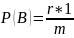 Это соотношение можно обобщить. Пусть S = 1, ..., Ат} — полная группа событий (т.е. ). Пусть все события «равноправны» (равновозможны, равновероятны). Тогда каждому событию из S соответст­вует вероятность 1/т . Если событие В состоит из r событий системы S, то , т.е. отношение числа событий, входящих в В, к общему числу событий в S.