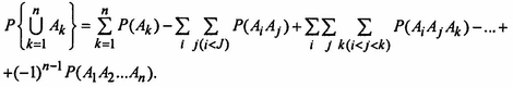 При таком подходе соотношения 1, 2, 3 являются аксиомами вероят­ности, аксиома 3 называется аксиомой сложения. Дополнительно пред­полагается, что аксиома 3 верна для счетного числа несовместных собы­тий: