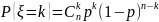 , т.е. ξ есть сумма независимых бинарных величин. Mξ и Dξ равны n-кратным значениям Mεk и Dξ, т.е. Mξ=np; Dξ=npq.