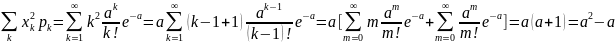 . Итак, параметр a закона Пуассона имеет двойной вероятностный смысл: это математическое ожидание и одновременно дисперсия, причем стандартное отклонение