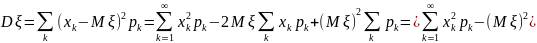 Пусть ξ – дискретная случайная величина, определяемая значениями x1, x2, … , xk, … и соответствующими вероятностями p1, p2, … , pk, … . Математическое ожидание Mξ определяется как сумма