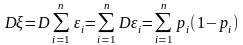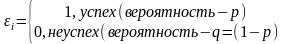Пример 2. В устройстве n блоков. При испытании блок с номером i выходит из строя с вероятностью рi. Определить среднее количество выходящих из строя блоков, а также дисперсию.