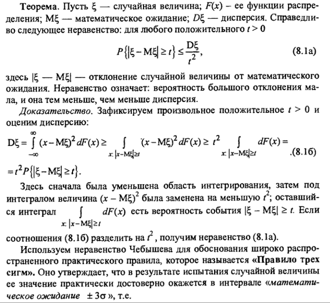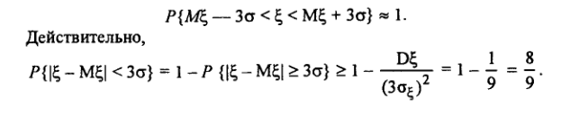 Это неравенство понимается так: вероятность большого отклонения случайной величины от своего математического ожидания мала, и она тем меньше, чем меньше дисперсия.