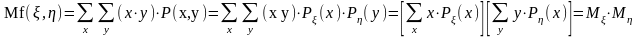 Если случайные величины независимы, то математическое ожидание их произведения равно произведению математических ожиданий: