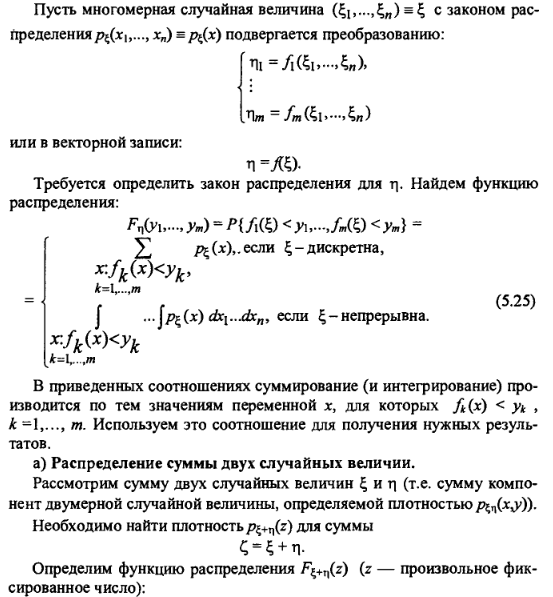 16. Преобразование многомерных случайных величин. Распределение суммы двух случайных величин.