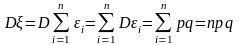 ример 1 использования свойств. Проведем п независимых испытаний случайного события А, вероятность появления которого в одном испытании Р(А) = р. Определим математическое ожидание и дисперсию количества