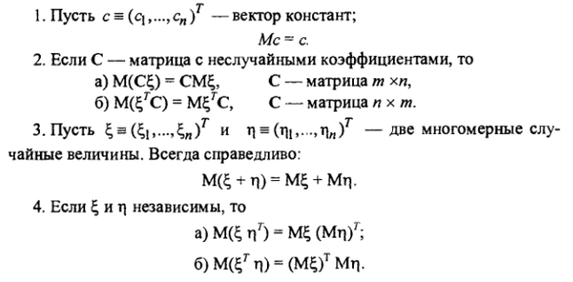21. Свойства математического ожидания и дисперсионной матрицы.