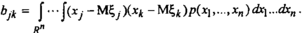 - непрерывна и р(x1,.., хn) — плотность вероятности, bjk выражается очевидным образом через интеграл: